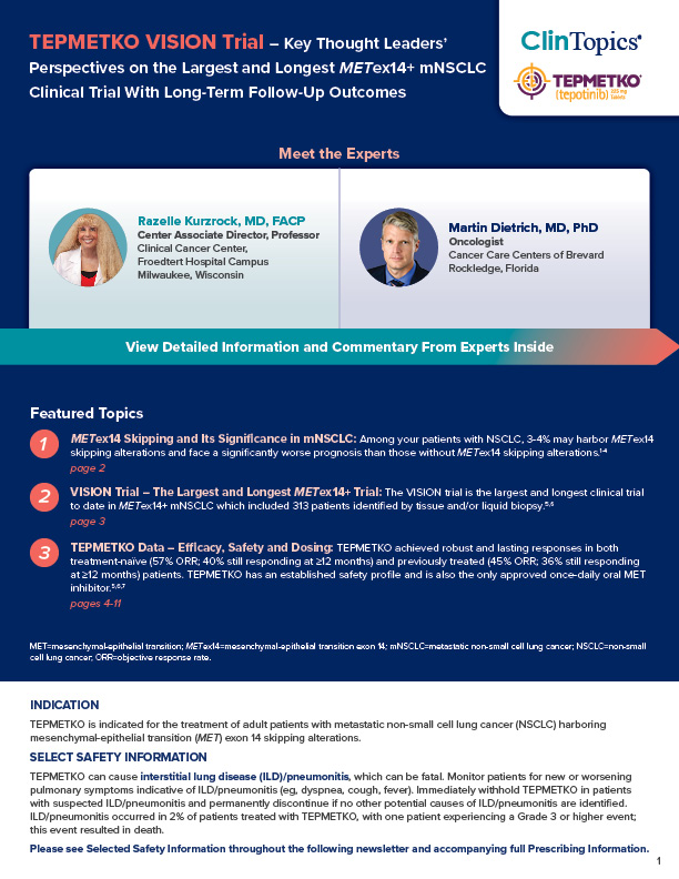Clinically relevant adverse reactions in <10% of patients who received TEPMETKO included ILD/pneumonitis, fever, dizziness, pruritus, and headache.